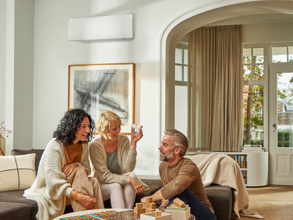 Tepelná čerpadla vzduch-vzduch Daikin, to jsou stylové vnitřní jednotky, široká nabídka modelů a regulátorů pro každou místnost. Představují komfortní, energeticky účinná řešení pro váš obývací pokoj, ložnici i kancelář.