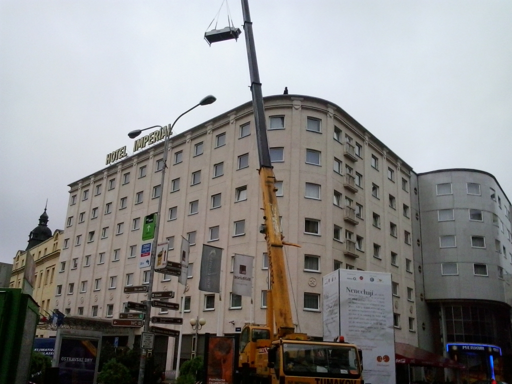 Montáž venkovních jednotek na střeše budovy pro 100 místností